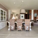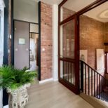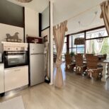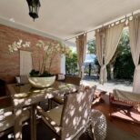 L’immobile internamente è composto da ingresso al piano terra raggiungibile attraversando un comodo patio privato e attrezzato, scala che porta al piano, disimpegno zona giorno, ampio e luminoso salone con camino, zona pranzo e ampia terrazza, cucina parzialmente a vista, disimpegno zona notte, due camere da letto e un bagno con finestra e doccia. Completa la proprietà un posto auto in corte privata e recitata e uno spazio verde. Zona accessibile con le auto.
